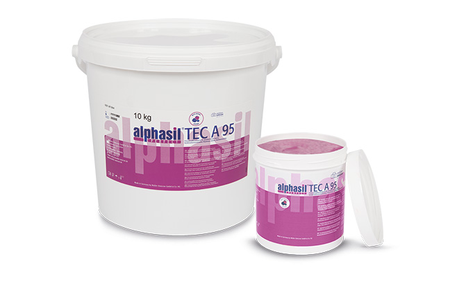 The condensation-curing putty lab-silicone alphasil PERFECT TEC A85 and A95 are cost-effective alternative to A-silicones. They are suitable for almost the same range of applications and offer sufficiently high precision, good drawing sharpness and are heat-resistant. The catalyst in paste form is easy to mix into the kneading material.